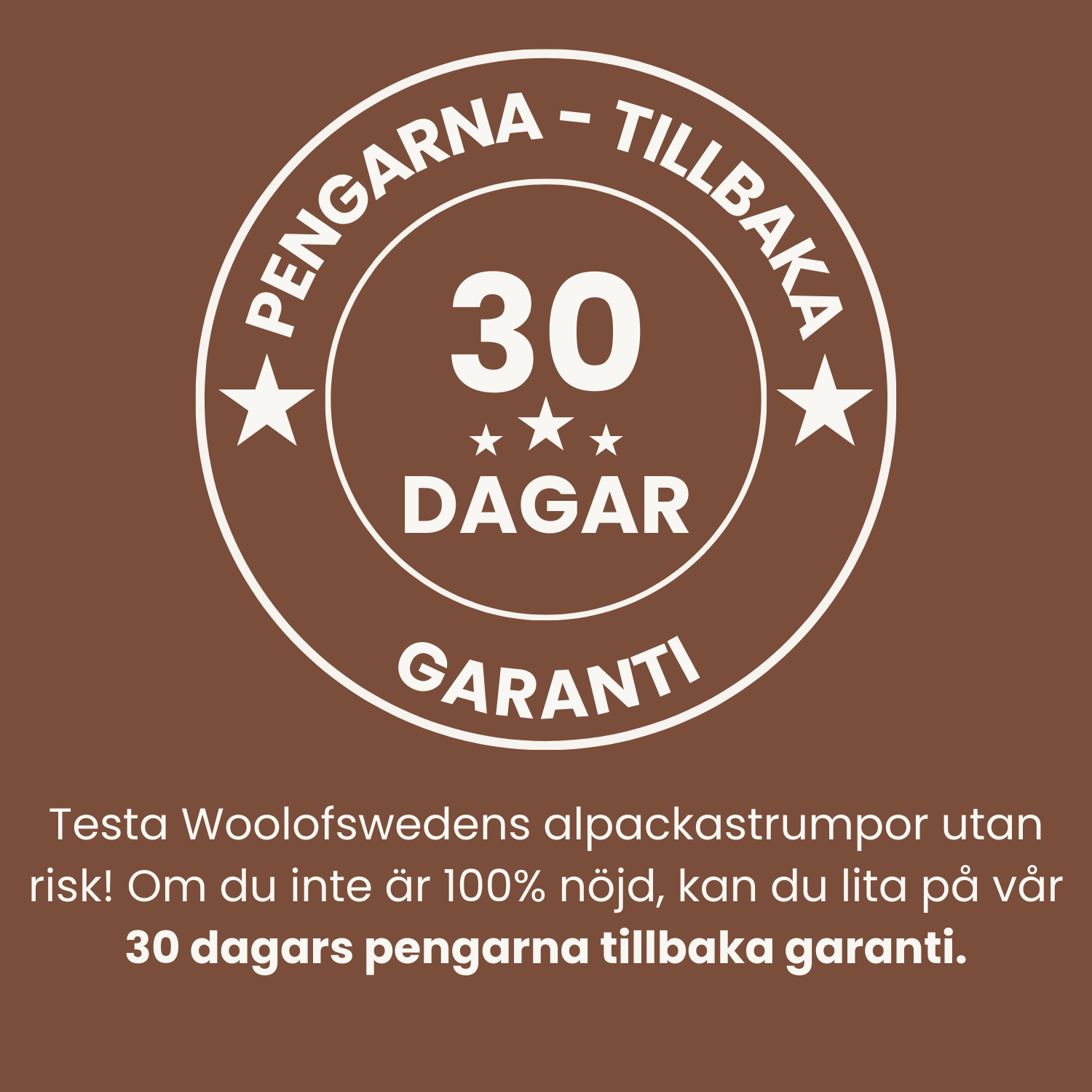 Vi vill att du ska älska dina alpackaullstrumpor. Om du mot förmodan inte är helt nöjd kan du enkelt returnera dem inom 30 dagar – utan krångel.