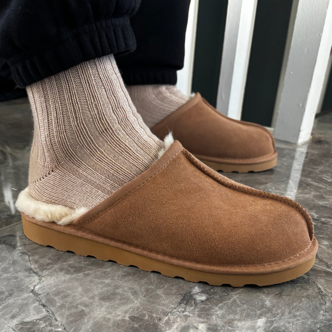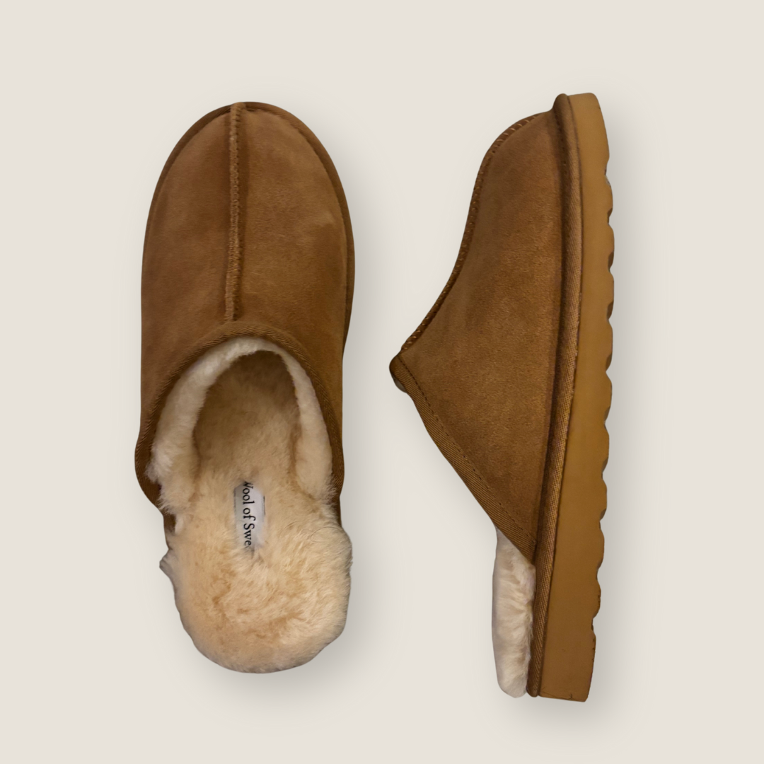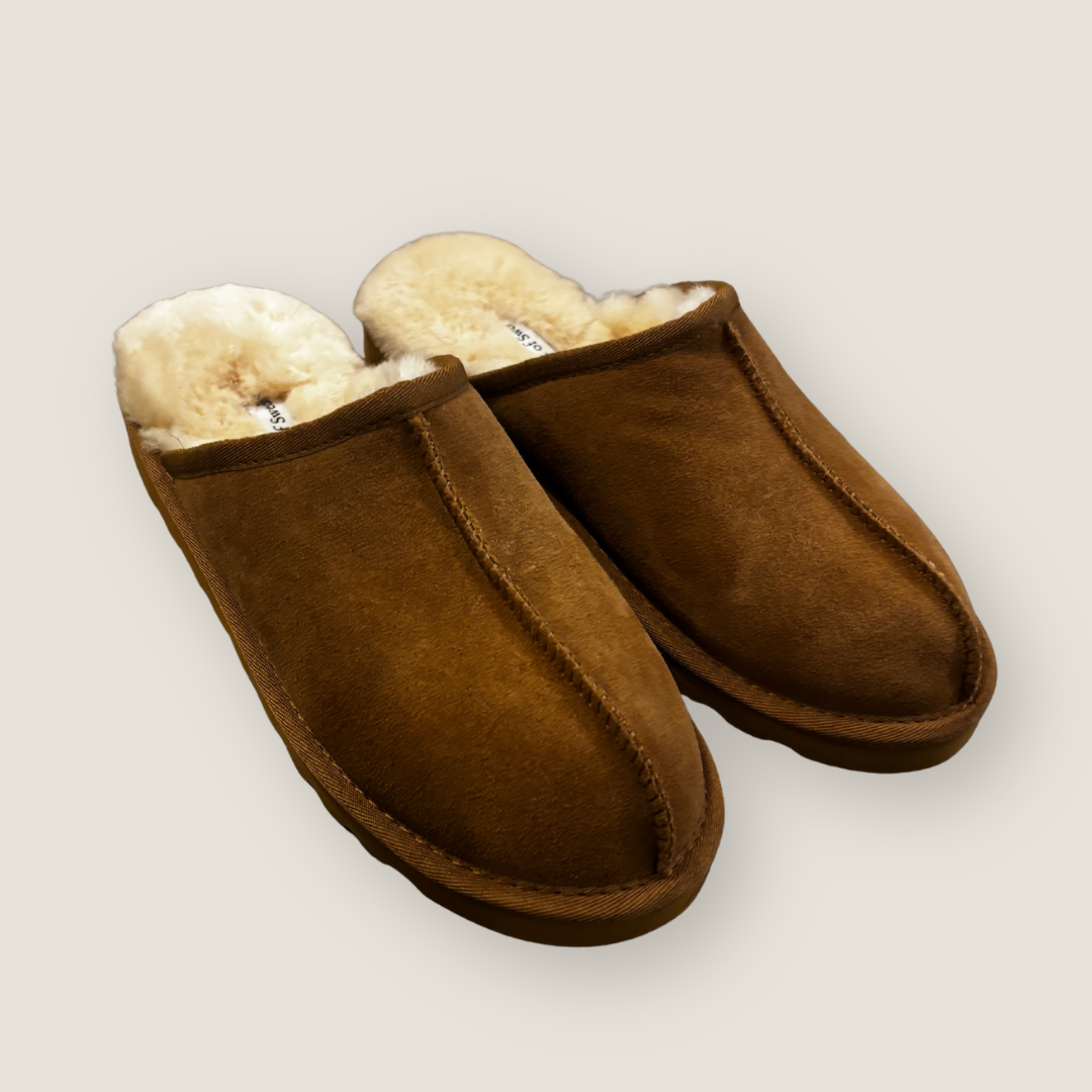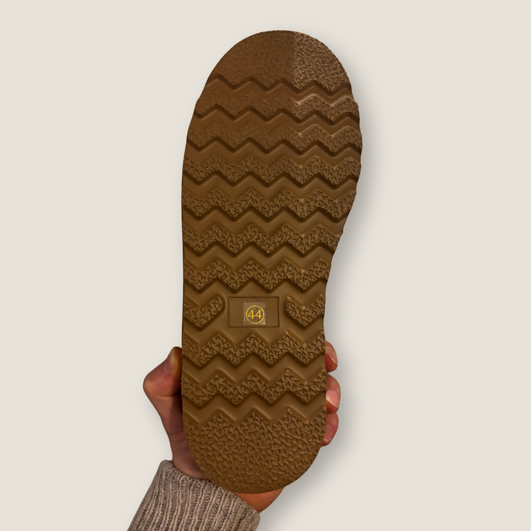 Våra tofflor är gjorda av äkta fårskinn – med mjuk ull på insidan som håller fötterna varma och läder på utsidan som gör dem snygga och hållbara. Den halkfria sulan gör att du kan gå säkert på alla golv. Perfekta för kalla morgnar och lugna kvällar hemma.